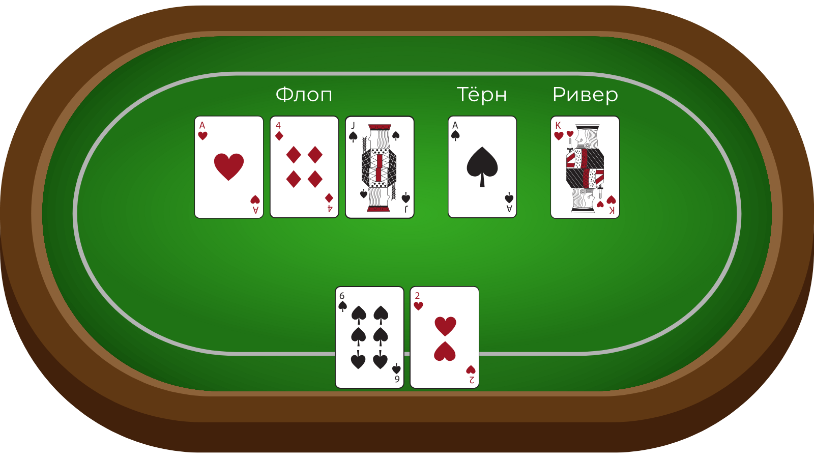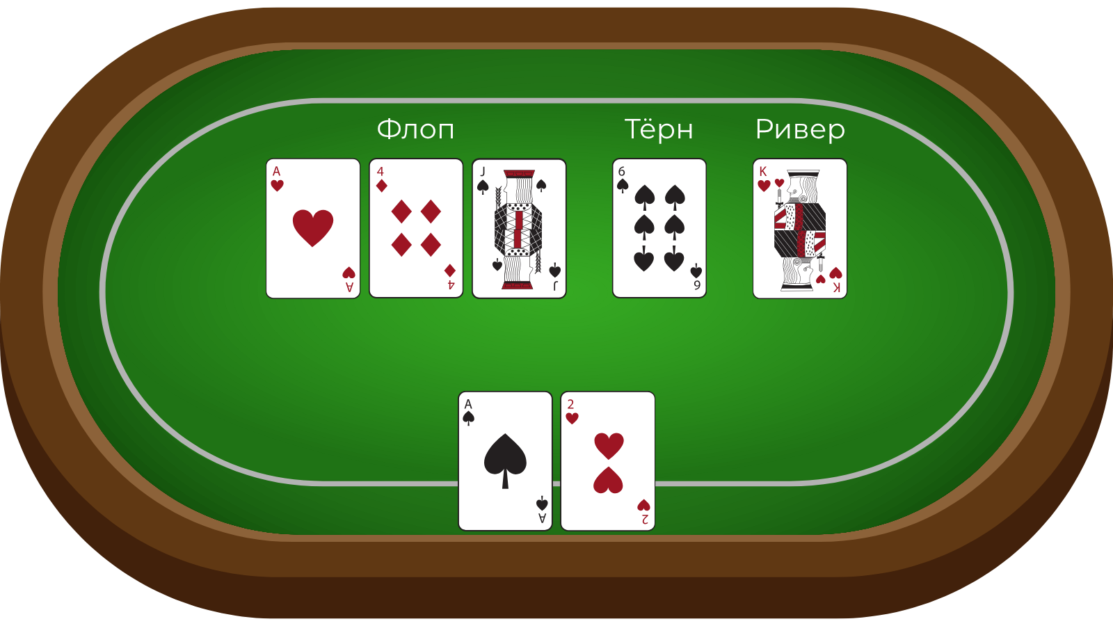 - Пара «рука + стол» — ваша карта совпала с картой борда.