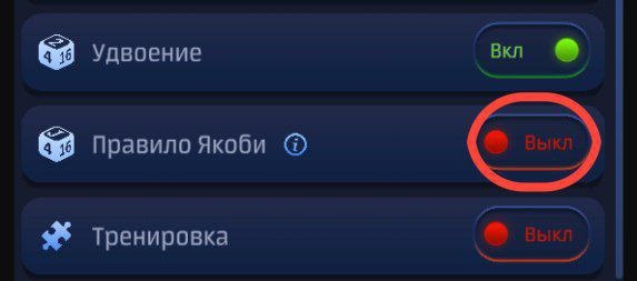 - В интерфейсе: тумблер «Правило Якоби» при создании игры.